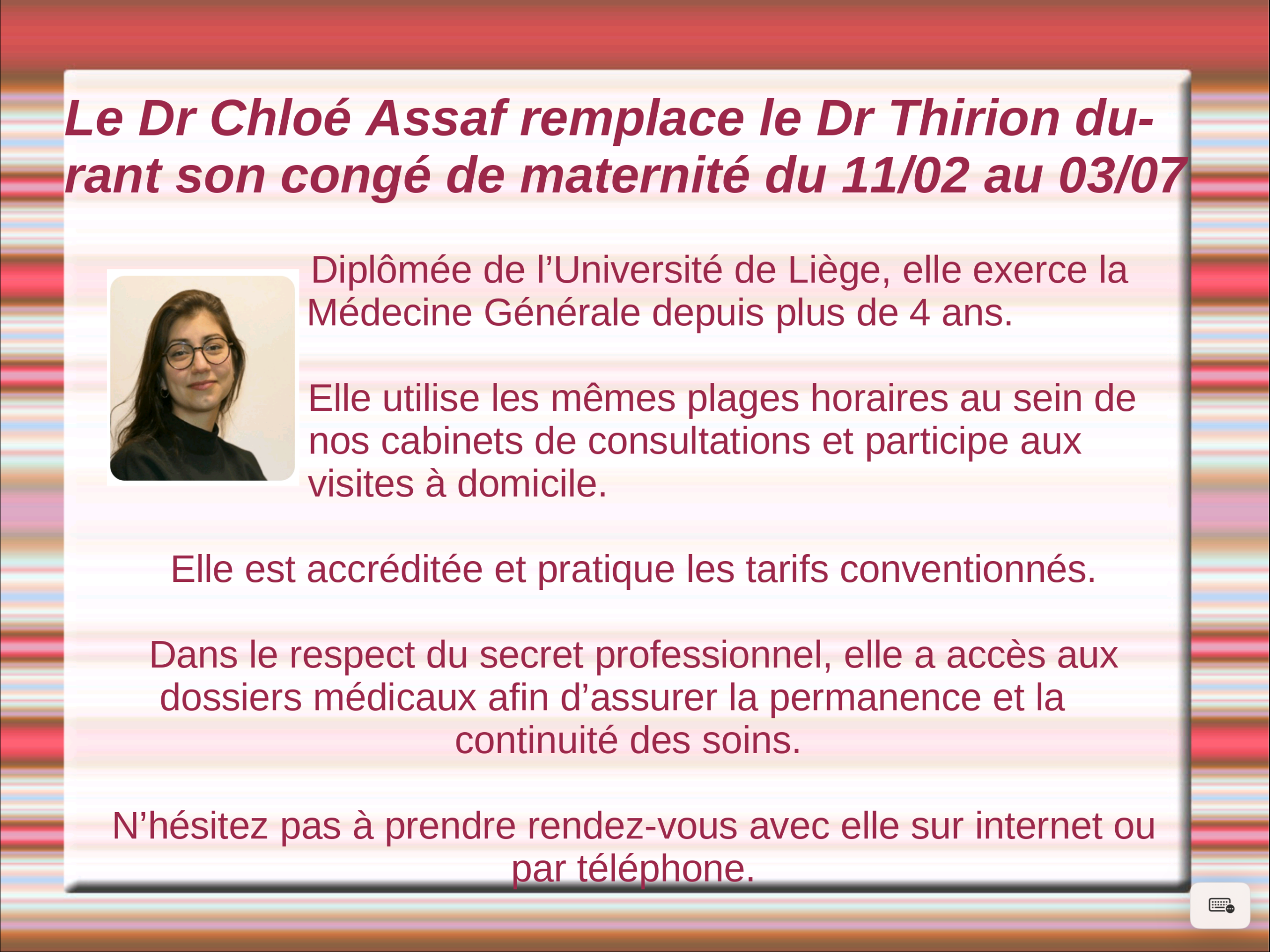 Nous limitons les visites à domicile aux patients qui sont dans l’impossibilité médicale de se déplacer.